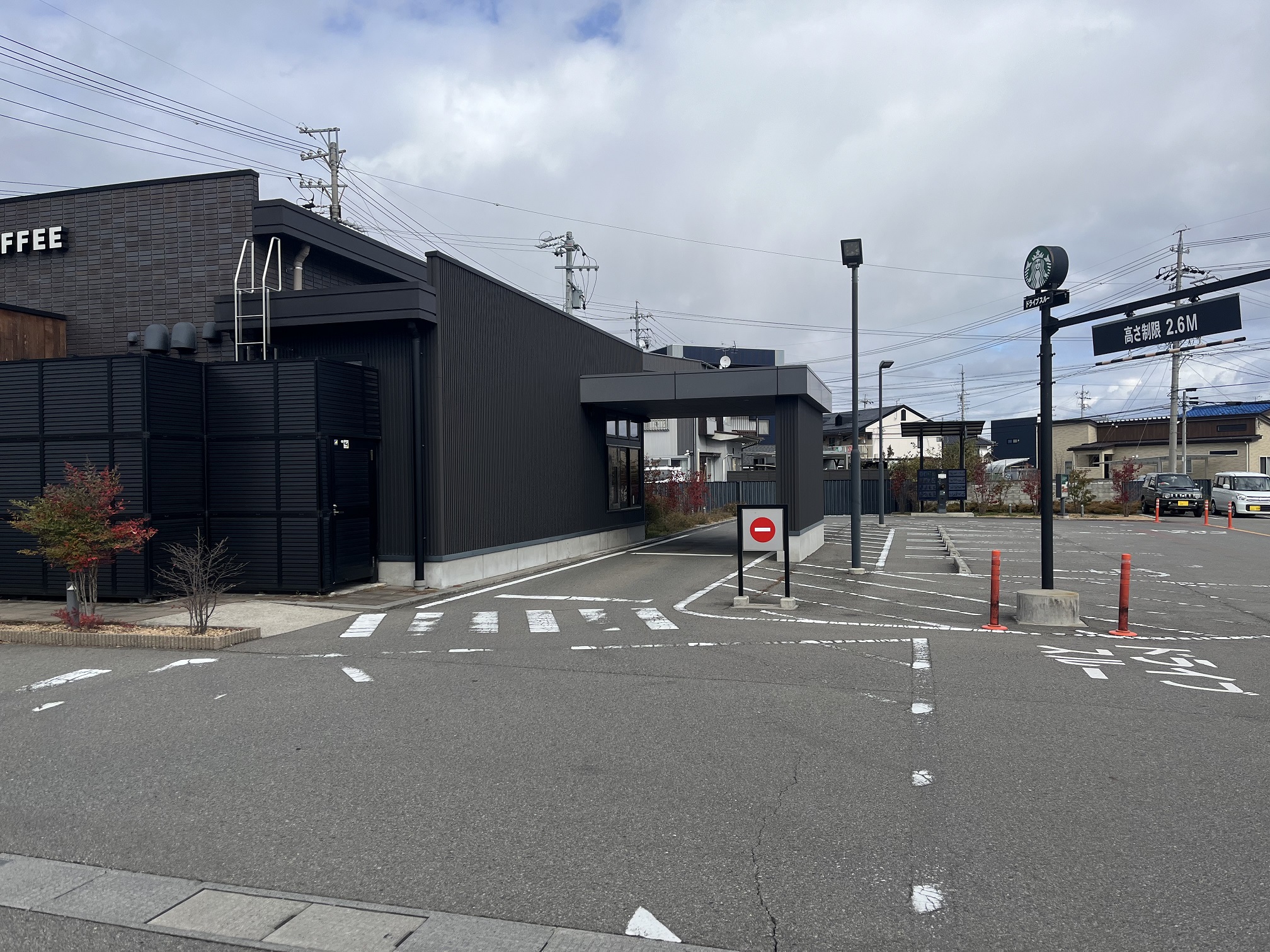 このため、ドライブスルーの列に並ぶ時に、たとえ混雑していたとしても、店舗が面している幹線道路(県道77号線)にはみ出すことがなく、不自由を感じません。